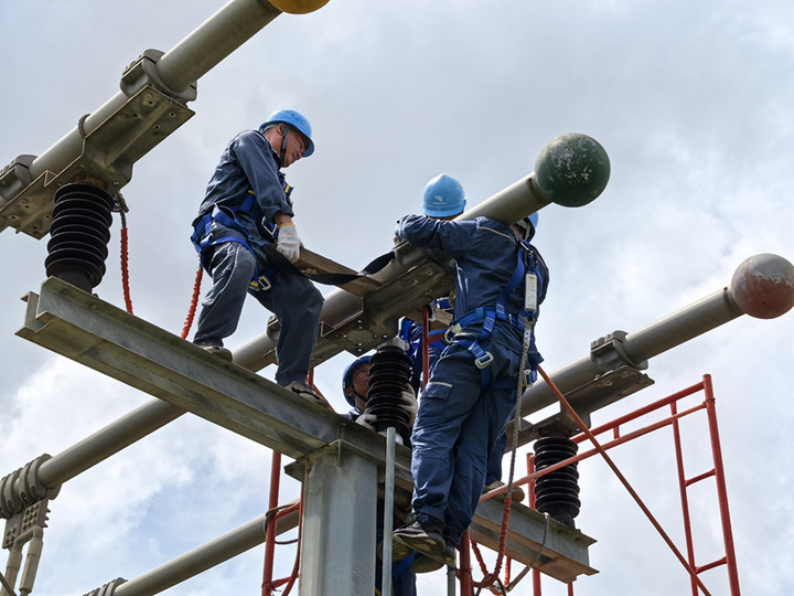 工作人员抢修电力。新华网发 (陈文裕 摄)