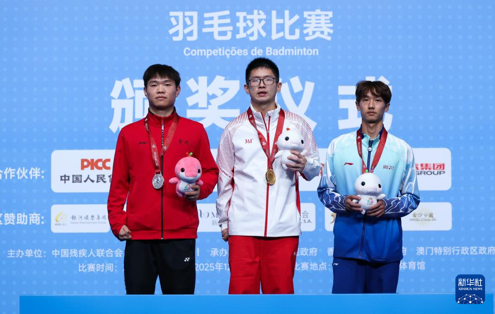 当日,全国第十二届残疾人运动会暨第九届特殊奥林匹克运动会羽毛球比赛在澳门举行,湖北队选手易宇哲、贵州队选手黄尚上、四川队选手熊礼川获得SL3男子单打冠亚季军。