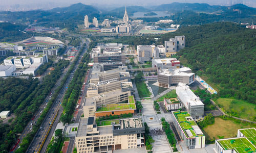 这是2020年9月5日在深圳市龙岗区拍摄的香港中文大学(深圳)(下)和深圳北理莫斯科大学(上)。新华社记者 毛思倩 摄