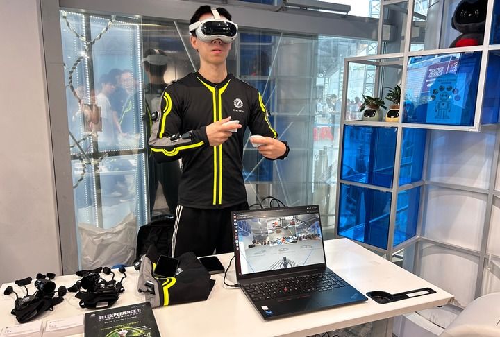 7月28日,一名工作人员在机器人6S店进行操作演示。新华社发(张子娴摄)