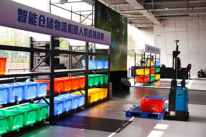 一台智能仓储物流机器人在比赛中挑战。新华每日电讯记者周科 摄