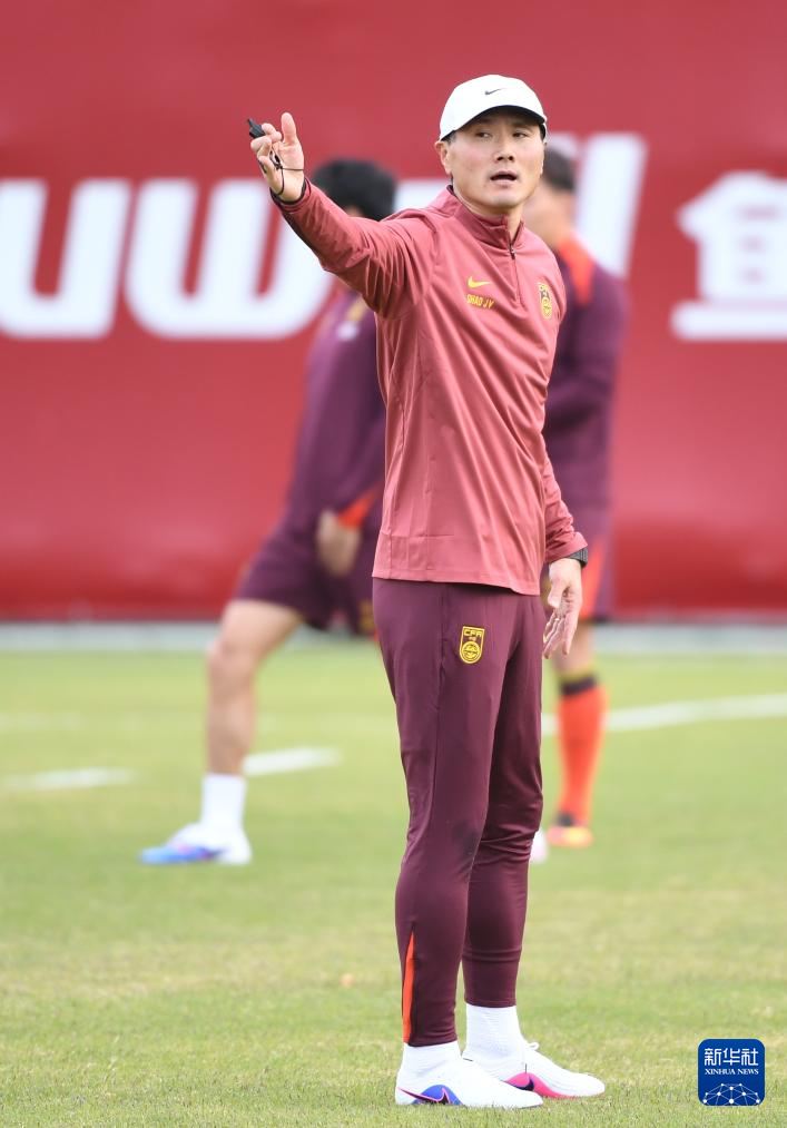 1月5日,国足主教练邵佳一在训练中指导球员。新华社记者 邓华 摄