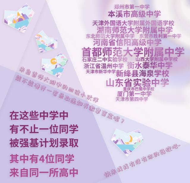 南开大学还公布了强基计划录取人数较多的学校,比如首都师范大学附属中学、山东省实验中学、河南省信阳高级中学、湖南师范大学附属中学、本溪市高级中学等等,这些学校不止一位同学被强基计划录取。