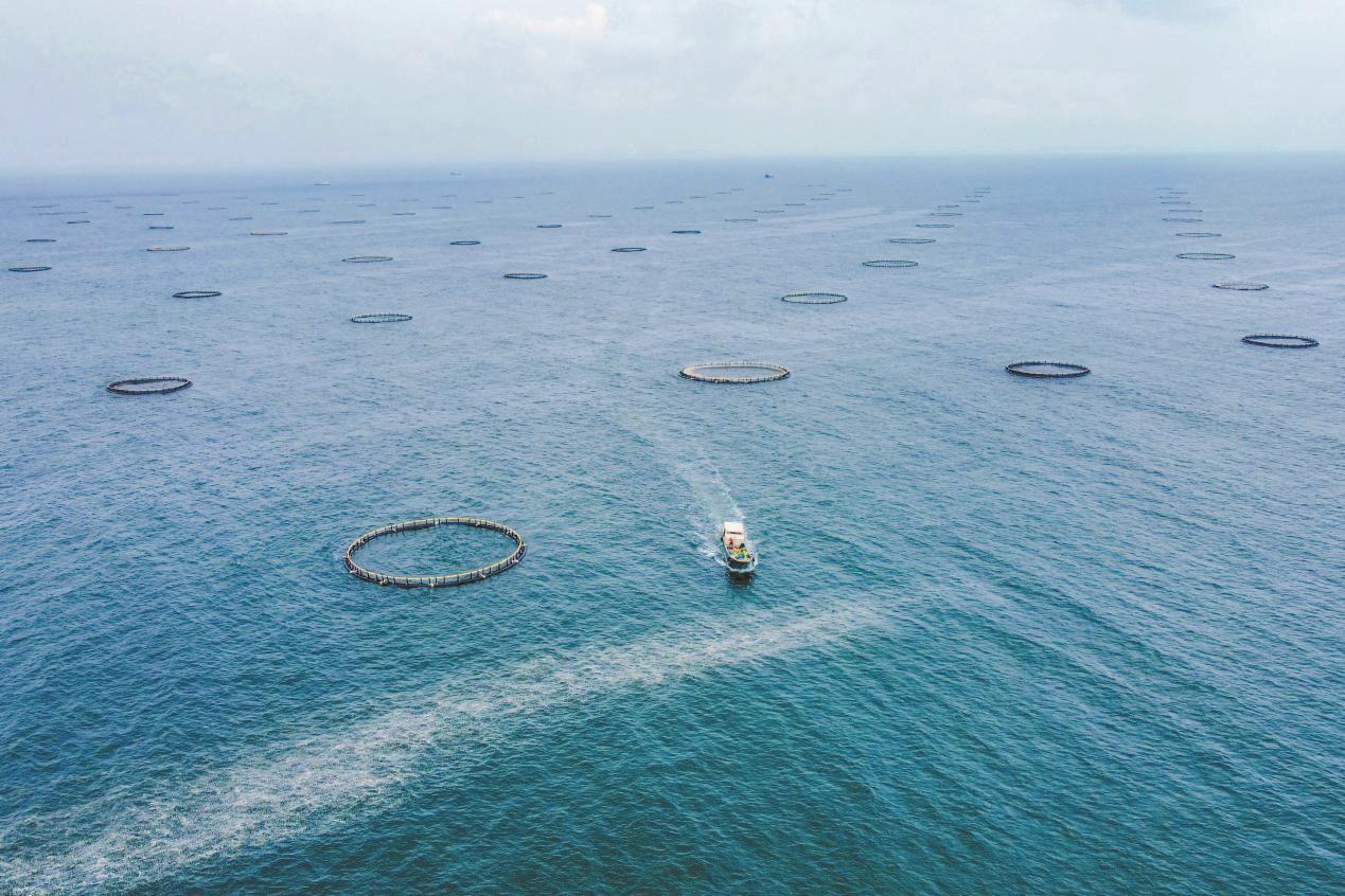 阳江市大镬岛深海网箱养殖基地,100多口大网箱镶嵌在蔚蓝的大海上,蔚为壮观。 吕华当 摄