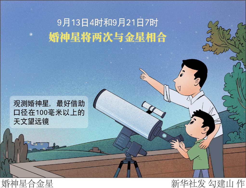 中国科学院紫金山天文台科普专家介绍,9月13日4时和9月21日7时,小行星带中最大的小行星之一婚神星将两次与金星相合。新华社发 勾建山 作