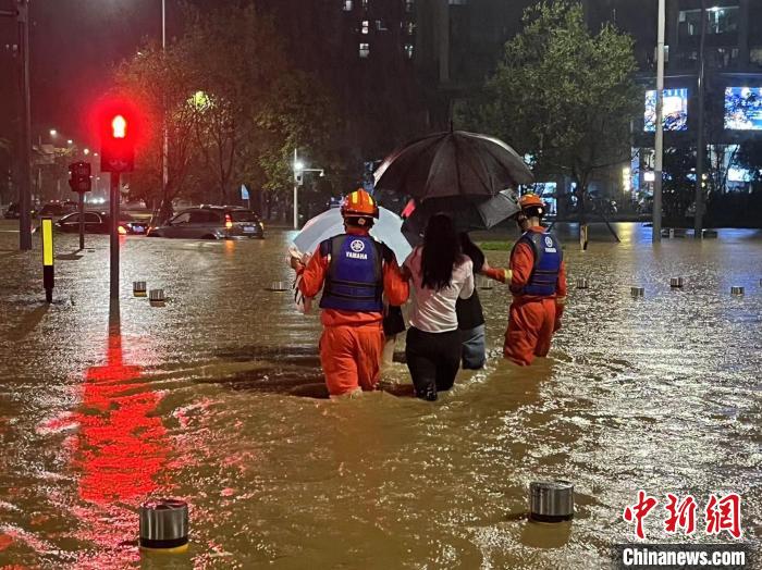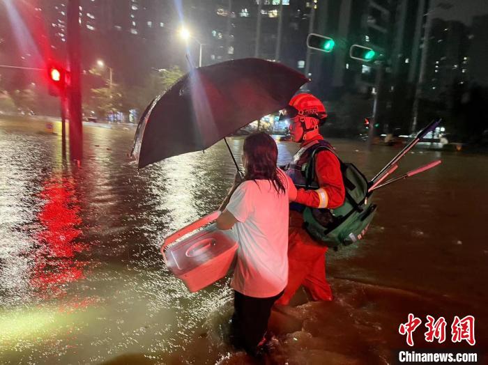 9月7日至8日,在台风“海葵”残余环流和季风共同影响下,深圳遭遇持续特大暴雨,消防救援人员在当地营救转移被困人员。广东省消防救援总队 供图