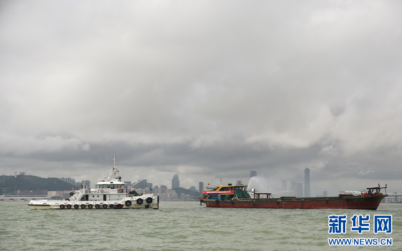 近日,2023年粤港澳三地海上搜救联合演习在珠澳水域举办。图为演习现场。新华网发(广东海事局供图)