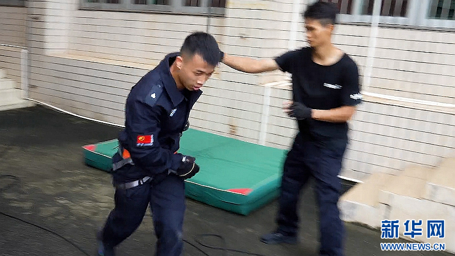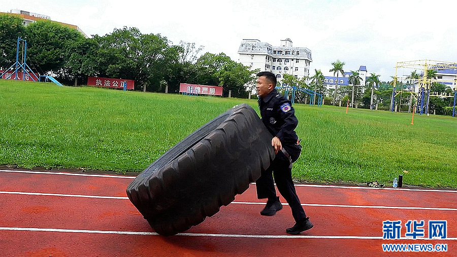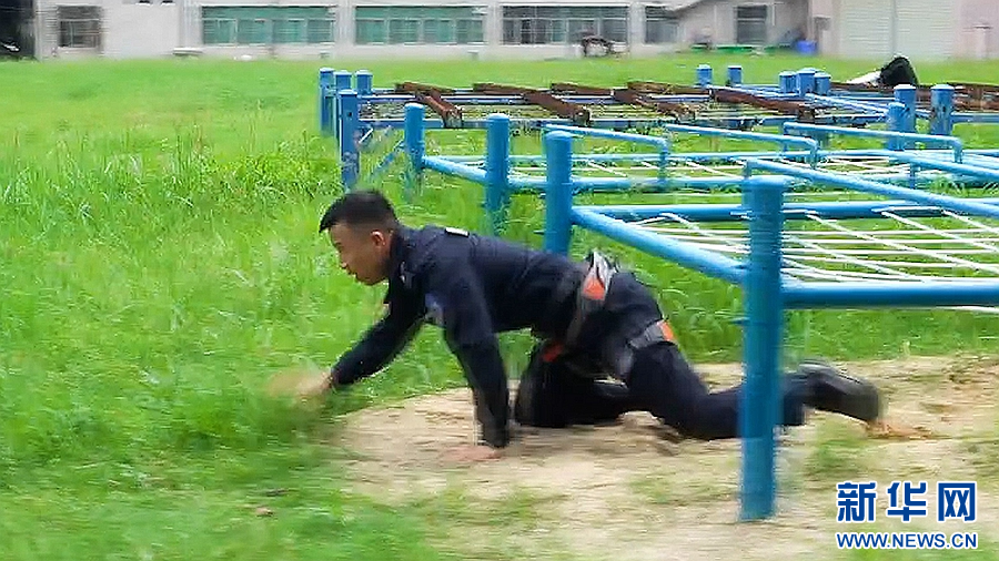 钻过10米低桩网、翻越2.4米高板、通过空中软网……这些锻炼项目是警察的日常科目。新华网发(博罗融媒 供图)