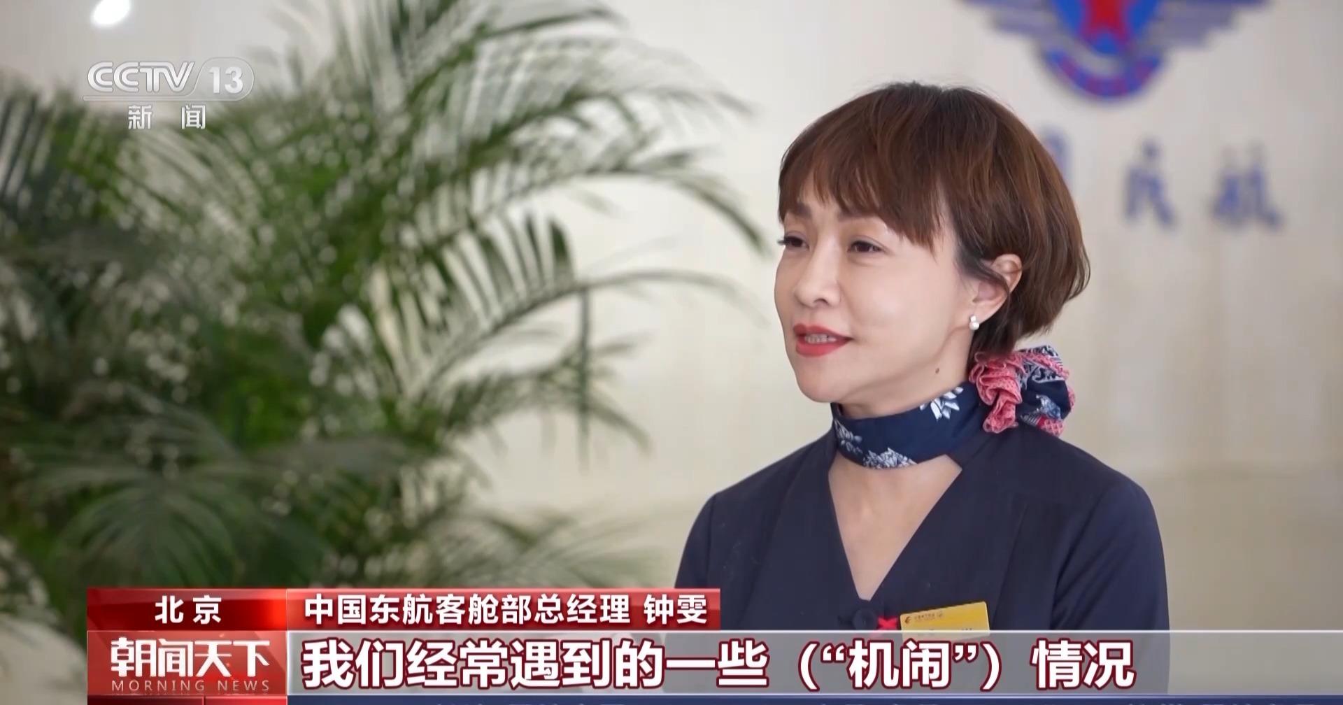 中国东航客舱部总经理钟雯:我们经常遇到的一些“机闹”情况,就是旅客之间互相抢占座椅,抢占行李架,不听从劝告,吸烟,包括电子烟,在客舱内大声喧哗,外放电子产品。