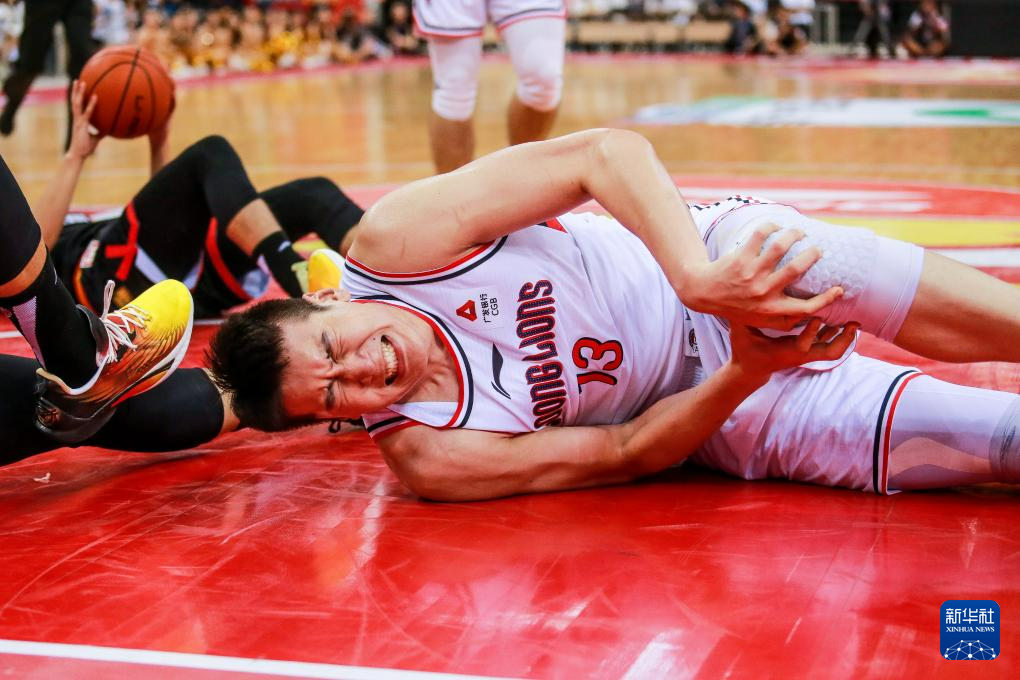 11月4日,广州龙狮队球员李炎哲在比赛中受伤倒地。