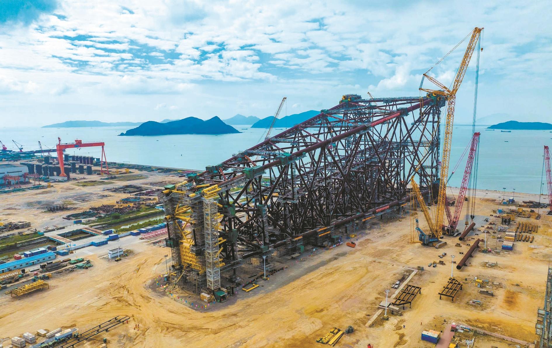 11月21日,我国自主设计建造的深水导管架“海基二号”在珠海成功封顶,它的完工对进一步提升我国深水超大型海洋油气装备的自主设计建造能力具有重要意义。