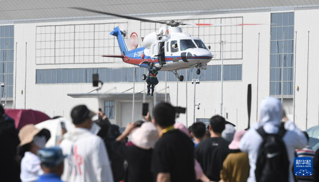 11月23日,交通运输部南海第一救助飞行队在2023亚洲通用航空展开幕式上进行空中救援演示。