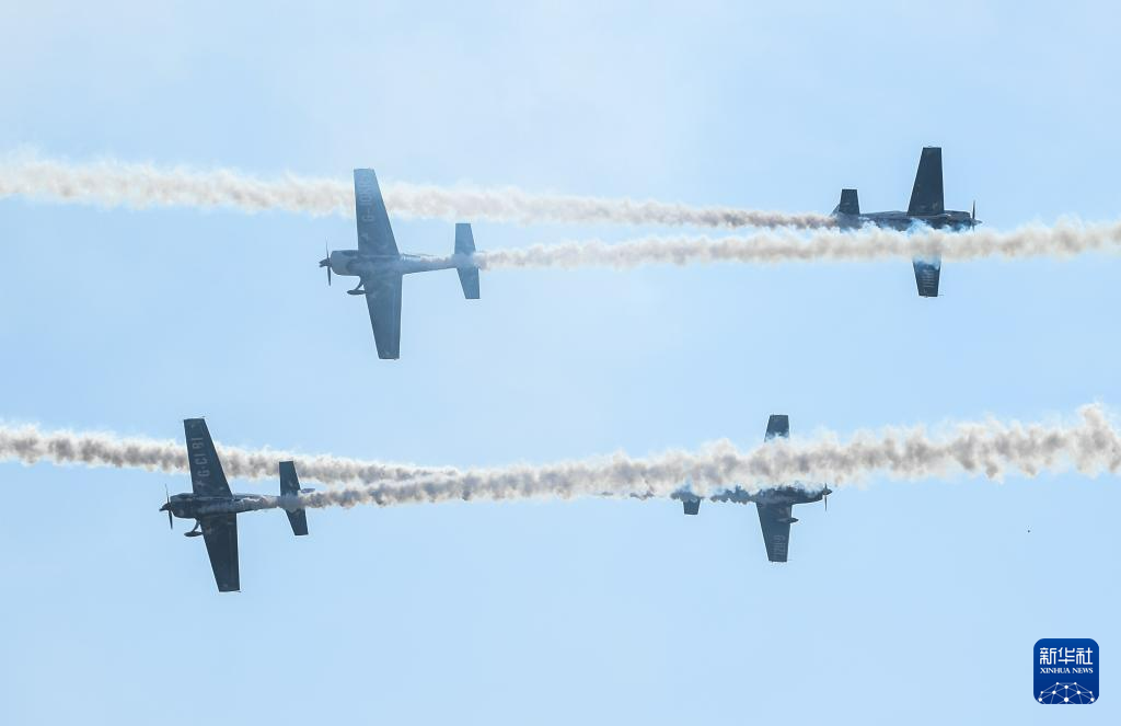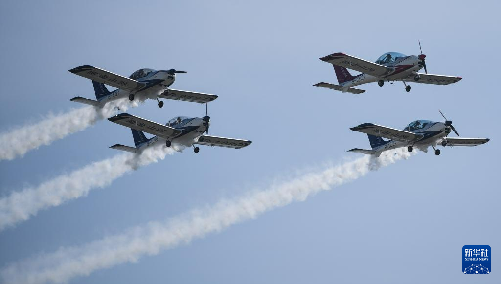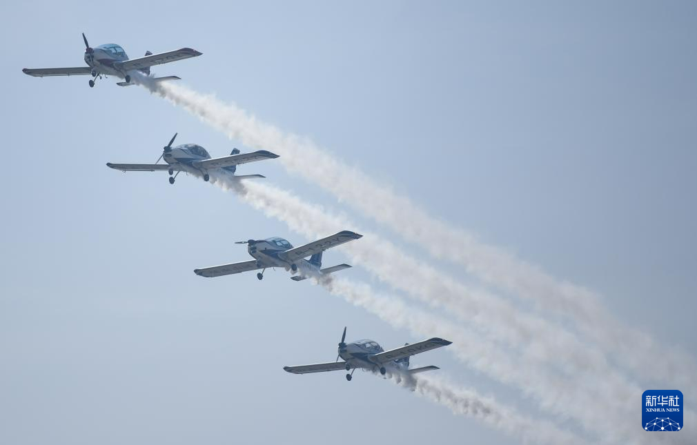 11月23日,山河飞行表演队在2023亚洲通用航空展开幕式上进行飞行表演。
