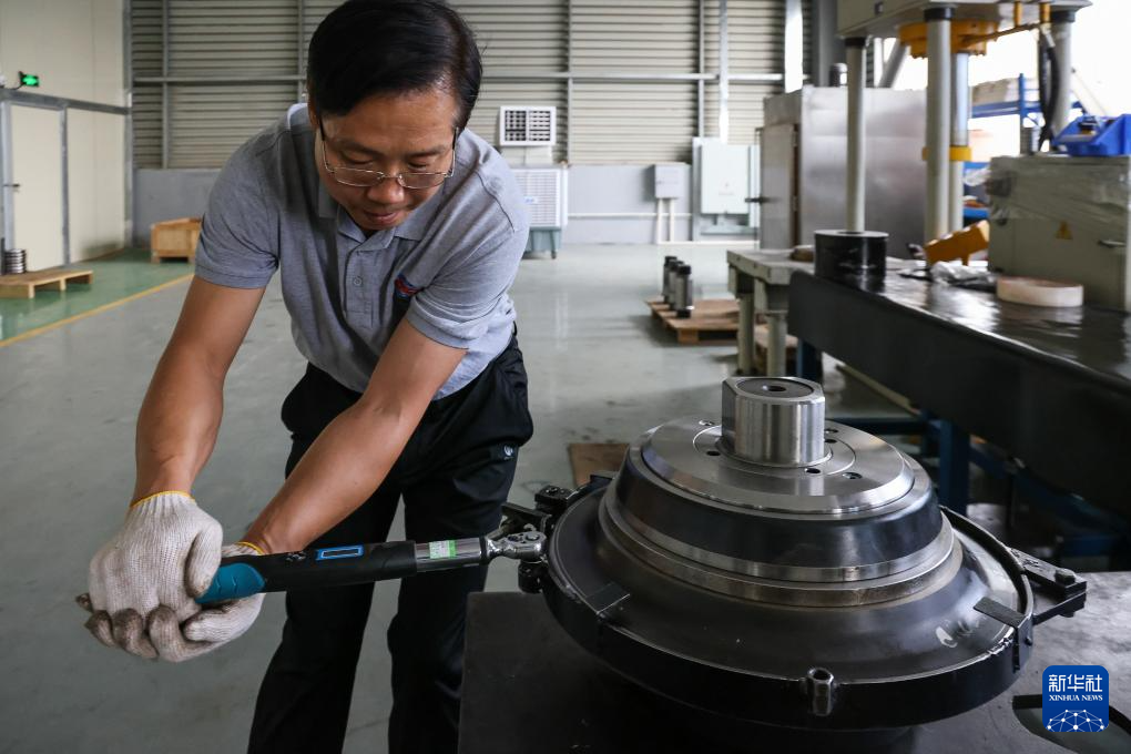 12月6日,中铁建华南高科的技术员对组装完成的盾构机滚刀进行扭矩微调。
