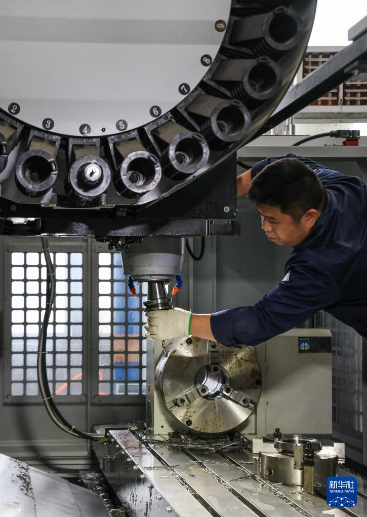 12月6日,中铁建华南高科的技术员为数控机床更换钻头。