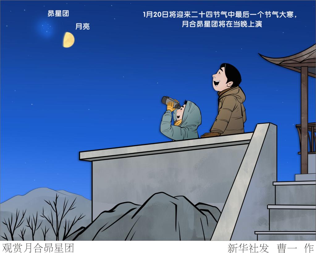 1月20日将迎来二十四节气中最后一个节气大寒,月合昴星团将在当晚上演,届时只要天气晴好,我国感兴趣的公众有望目睹到这两个不同天体上演的“互动一刻”。