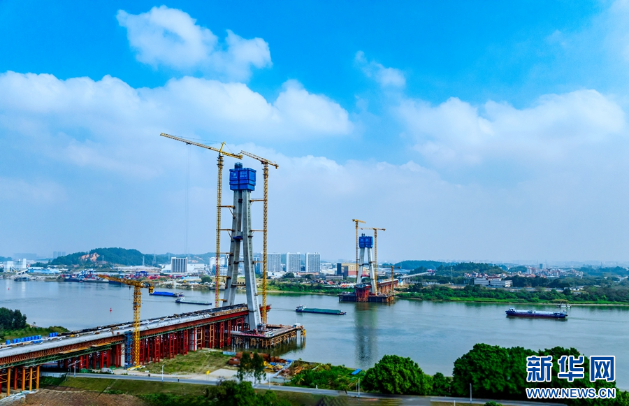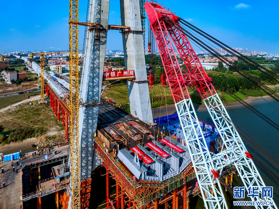 佛山特大桥钢梁吊装现场。新华网发(曾铠钢 摄)