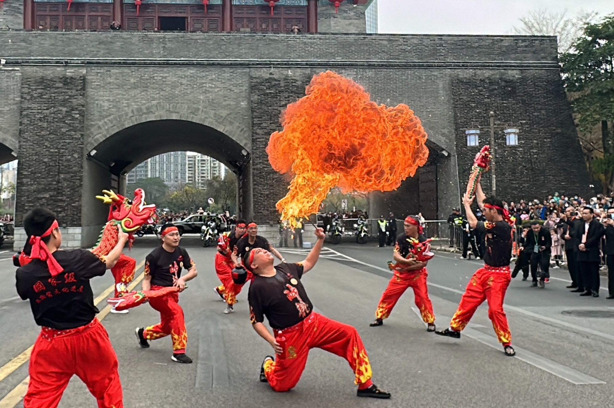 “醉龙喷火”瞬间(央广网见习记者 罗世伟 摄)