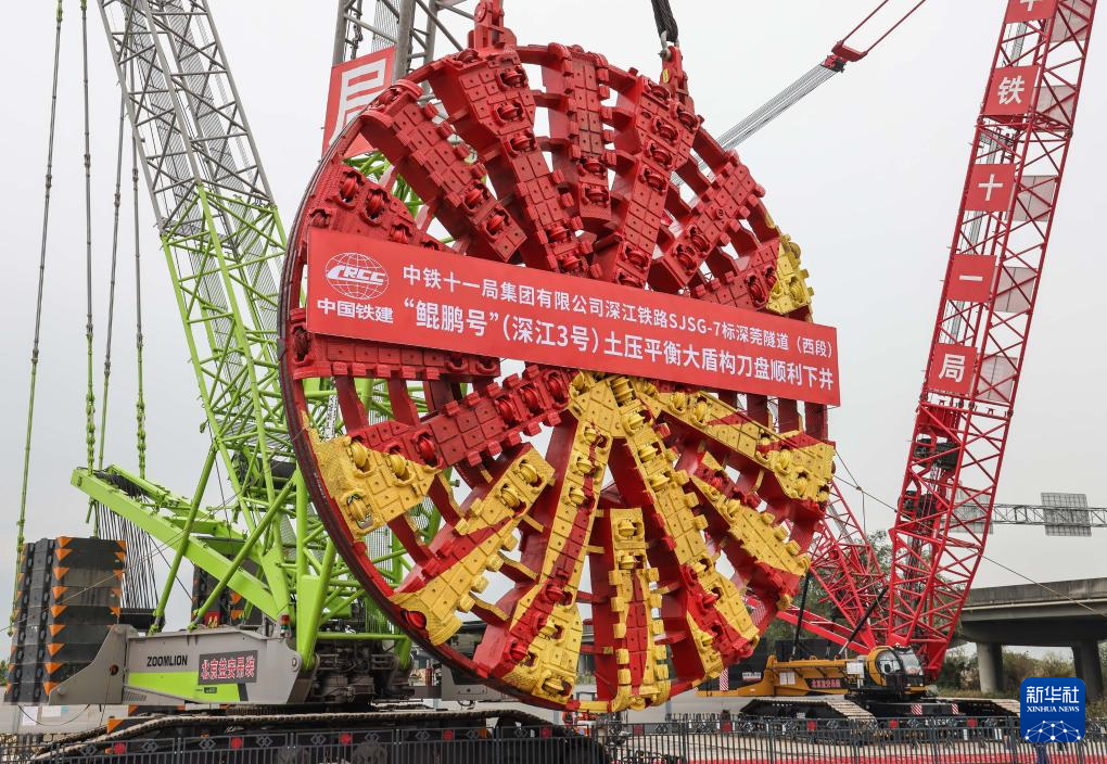当日,在由中铁十一局承建的深江铁路深莞隧道西段,“鲲鹏号”盾构机刀盘吊装下井,该段是13米级大直径单洞双线隧道。深江铁路是我国“八纵八横”高铁网沿海通道的重要组成部分,正线全长约116公里。