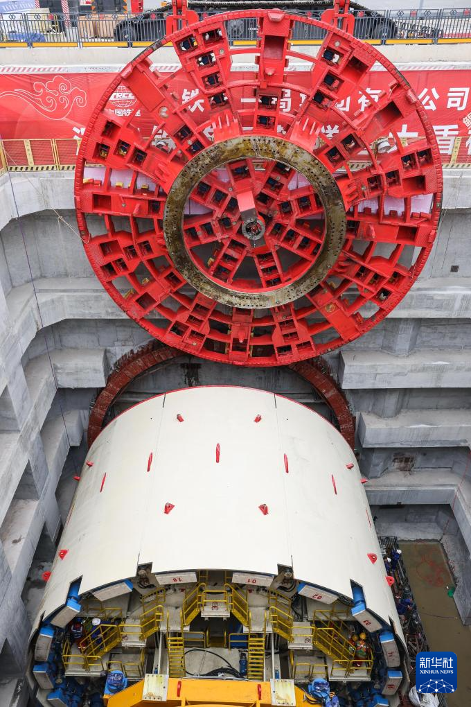 2月28日,重达330吨的“鲲鹏号”盾构机刀盘被吊起。