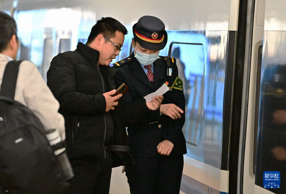 3月5日,旅客在厦门北站向G5065次列车的列车员咨询车票坐席。
