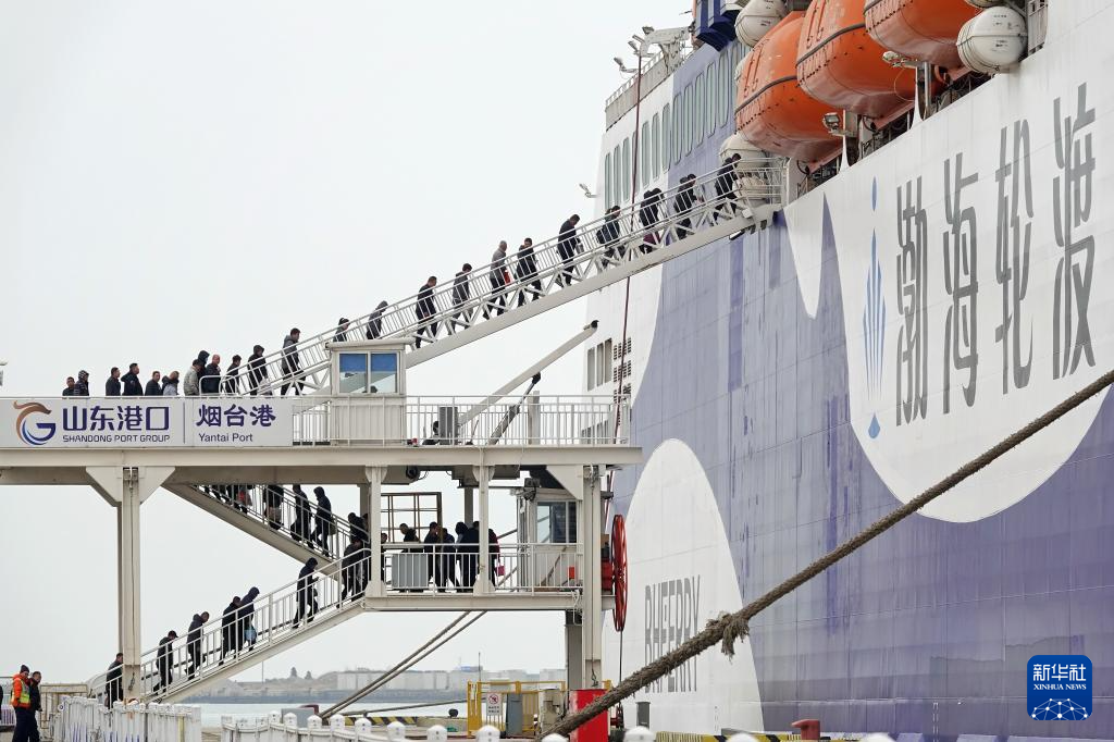 3月5日,旅客在山东港口烟台港乘船前往大连。
