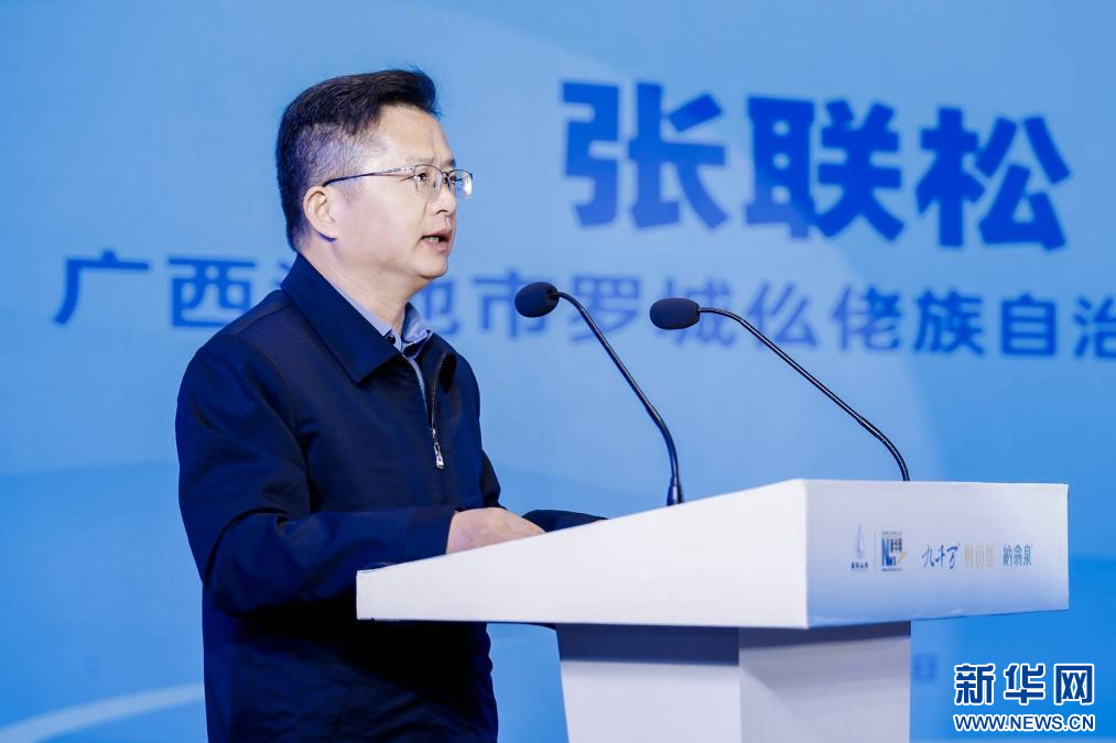 罗城仫佬族自治县委书记张联松致欢迎词。新华网发