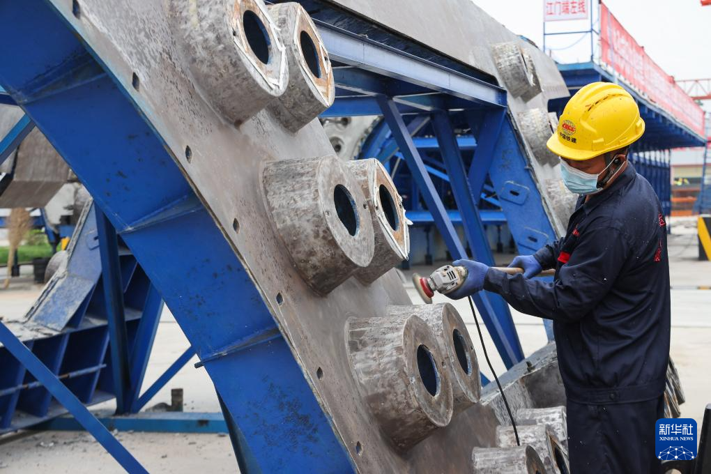 4月3日,施工人员在深江铁路中国铁建大桥局中山制梁场对脱模模具进行打磨抛光。