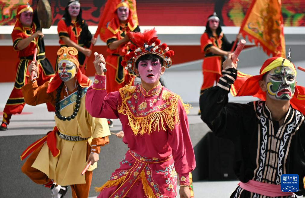 当日,第135届中国进出口商品交易会开幕。来自广东普宁的南山英歌队进行的英歌舞展演吸引各国采购商、参展商驻足观看。