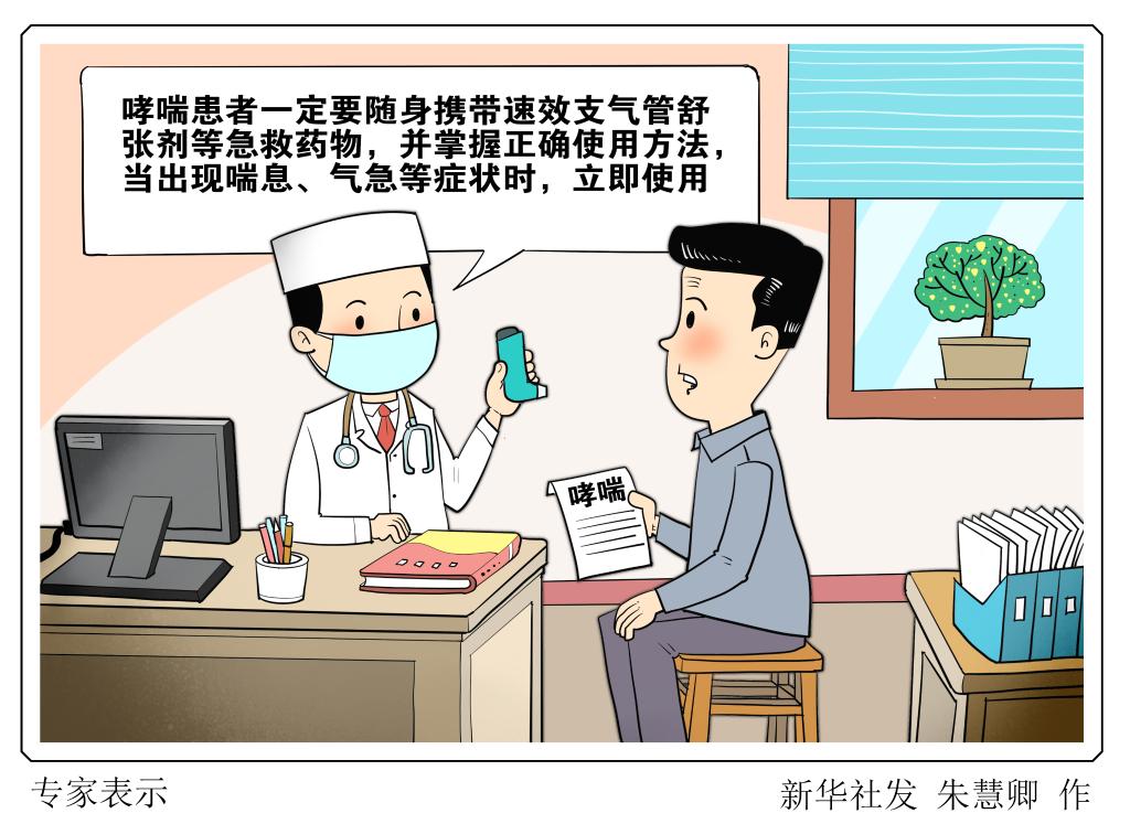 专家表示,哮喘患者一定要随身携带速效支气管舒张剂等急救药物,并掌握正确使用方法,当出现喘息、气急等症状时,立即使用。如果使用急救药物后仍不能缓解症状,应继续吸入支气管舒张剂并立即就医。新华社发 朱慧卿 作