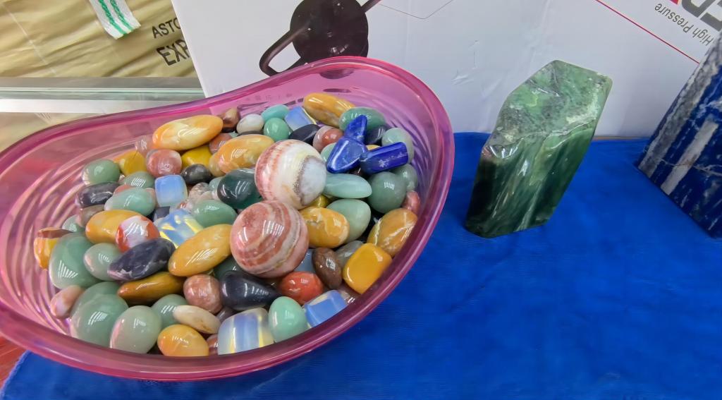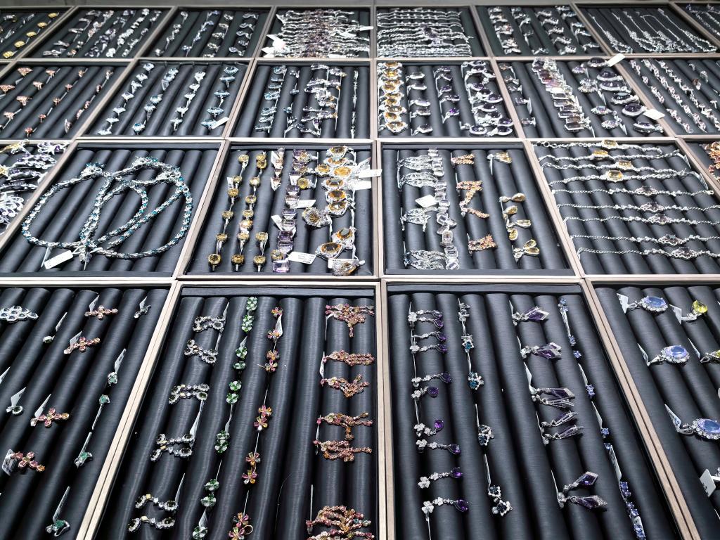 走进可塘珠宝交易市场,一排排档口上,宝石戒指、发晶手串等琳琅满目,旁边的原料市场内,坦桑尼亚的蓝宝石、巴西的南红玛瑙等120多种石料汇聚于此,这里珠宝饰品远销欧美、东南亚等地。