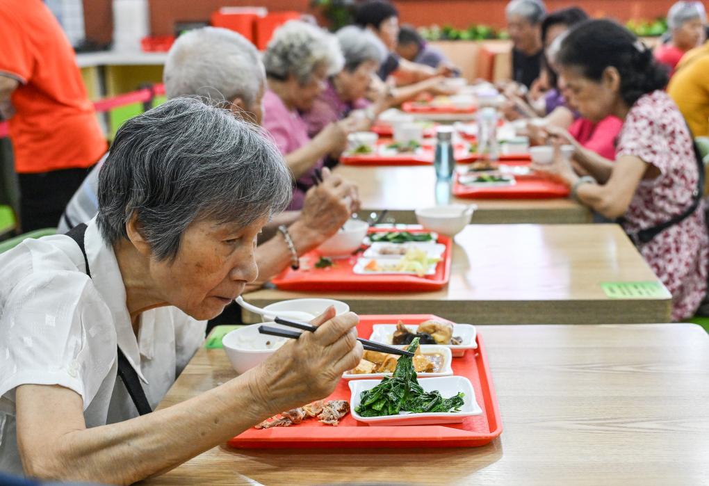 老人们在广州市荔湾区南源街道长者饭堂进餐(7月24日摄)。新华社记者 李贺 摄