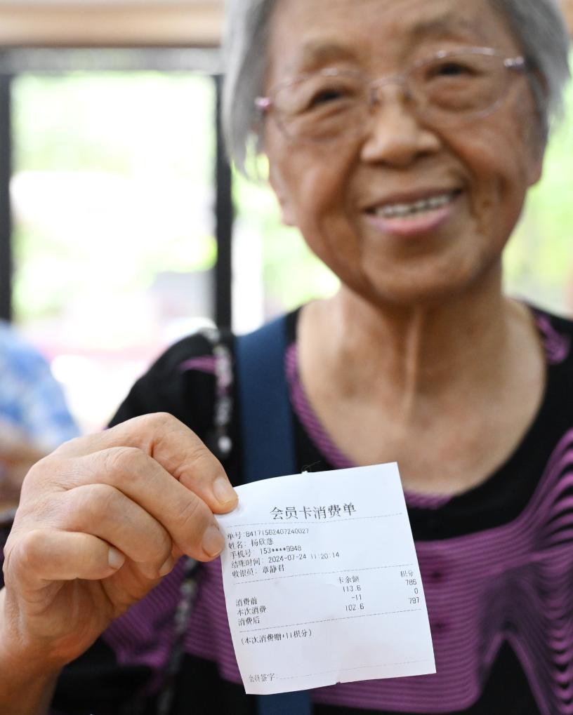 杨欣慈阿婆展示她中午在南源街道长者饭堂的消费记录(7月24日摄)。新华社记者 李贺 摄