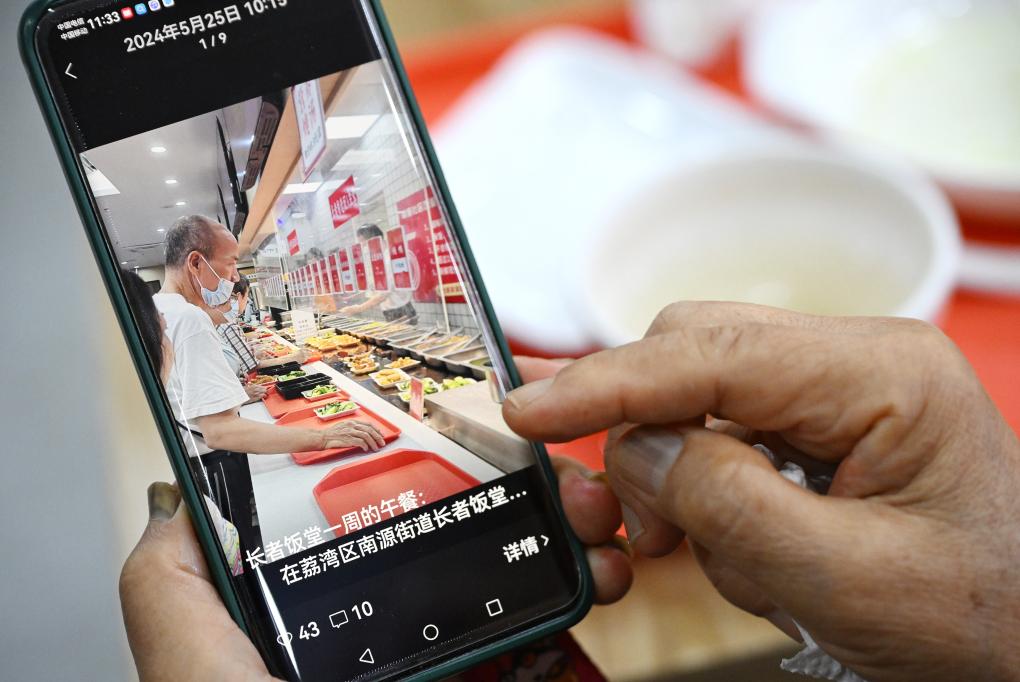 杨欣慈阿婆展示她在南源街道长者饭堂内拍摄的照片(7月24日摄)。新华社记者 李贺 摄