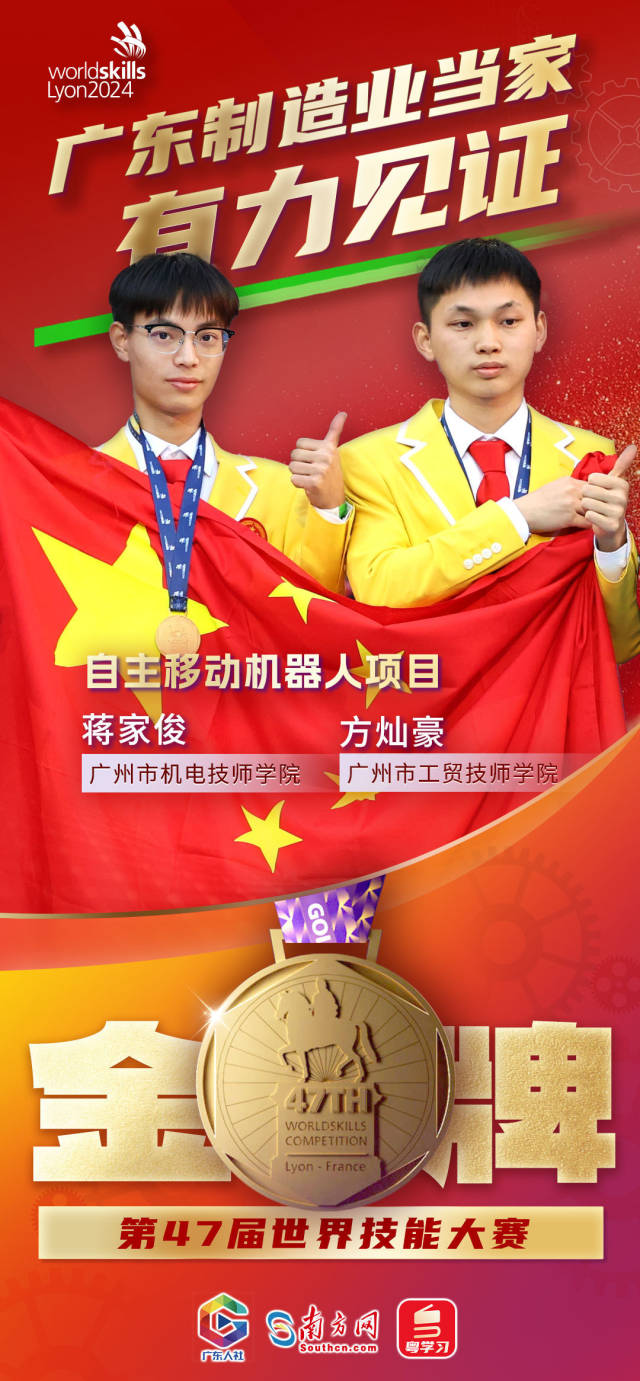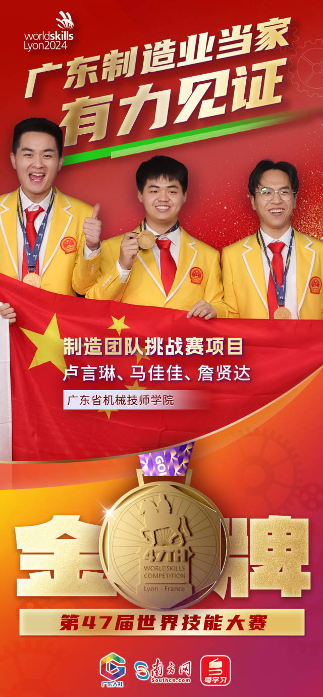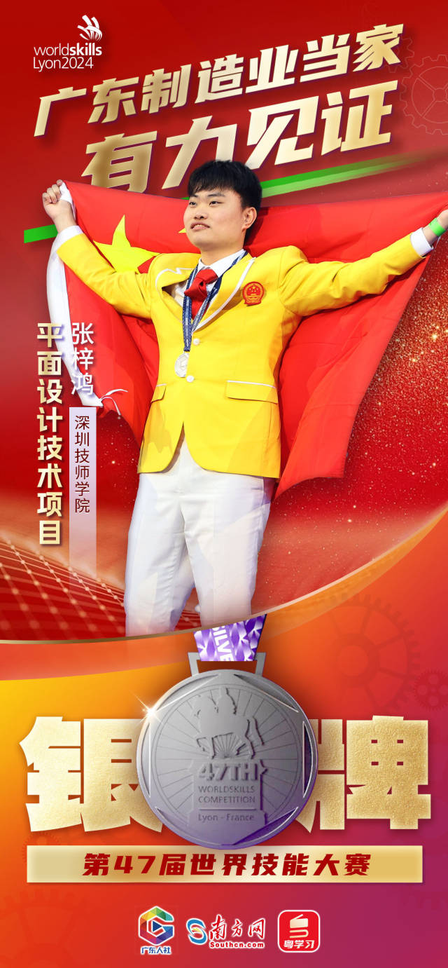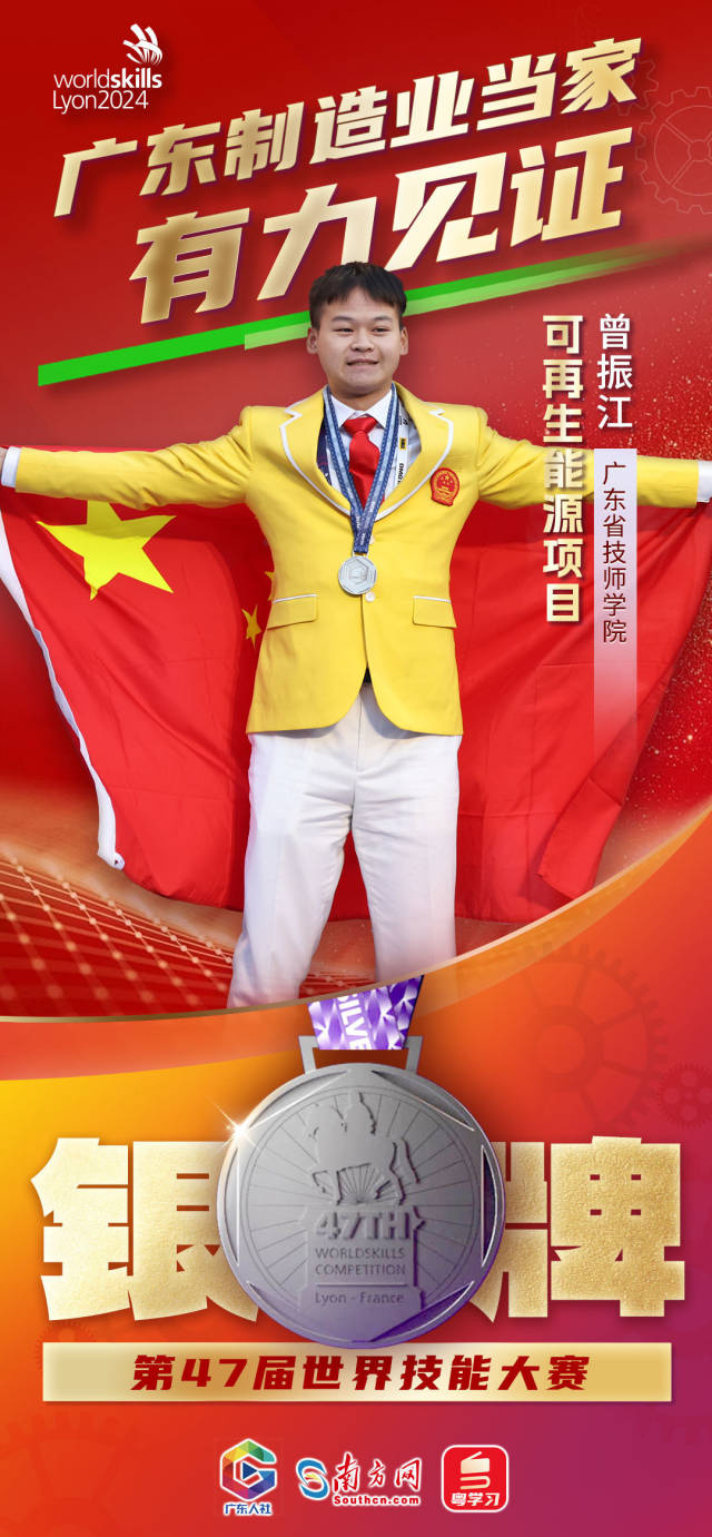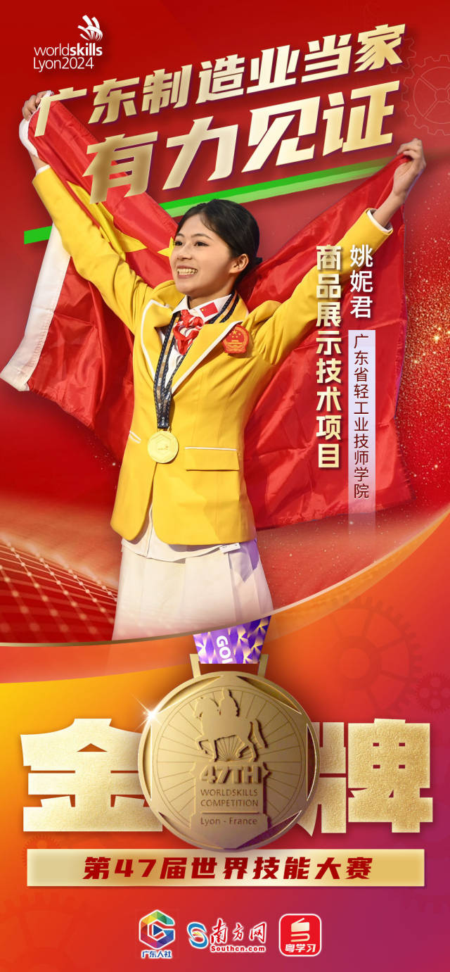 下面以一组海报,带你感受世界技能大赛上的广东荣光!