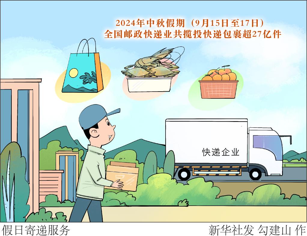 国家邮政局监测数据显示,今年中秋假期(9月15日至17日),全国邮政快递业揽收快递包裹13.07亿件,比去年中秋假期日均增长35.4%;投递快递包裹14.07亿件,同比增长45.7%。