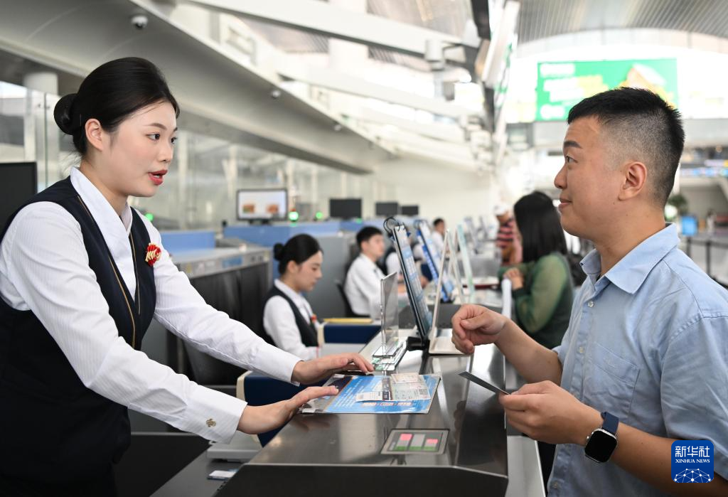 9月19日,乘坐南航C919首航航班的旅客在广州白云国际机场柜台值机。新华社记者 邓华 摄