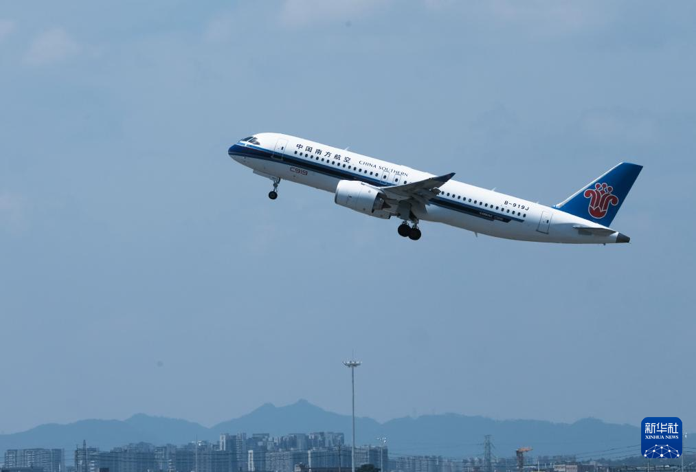 当日12时许,机头显著位置标记着“C919”字样的中国南方航空公司CZ3539航班从广州白云国际机场腾空而起,满载乘客飞向上海。