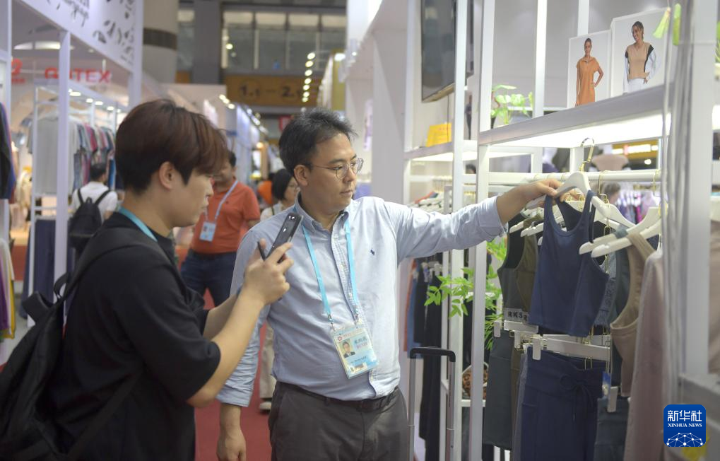 11月4日,客商在广交会上参观选购服装产品。新华社记者卢汉欣摄