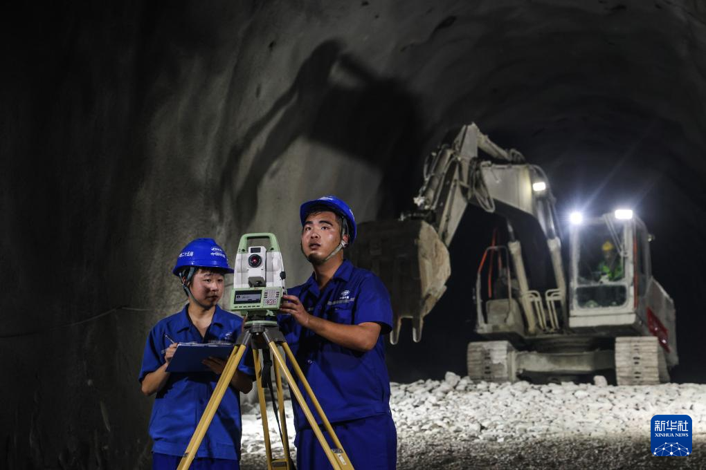 11月15日,技术人员在百吉岭隧道贯通点测量。新华社记者 刘大伟 摄