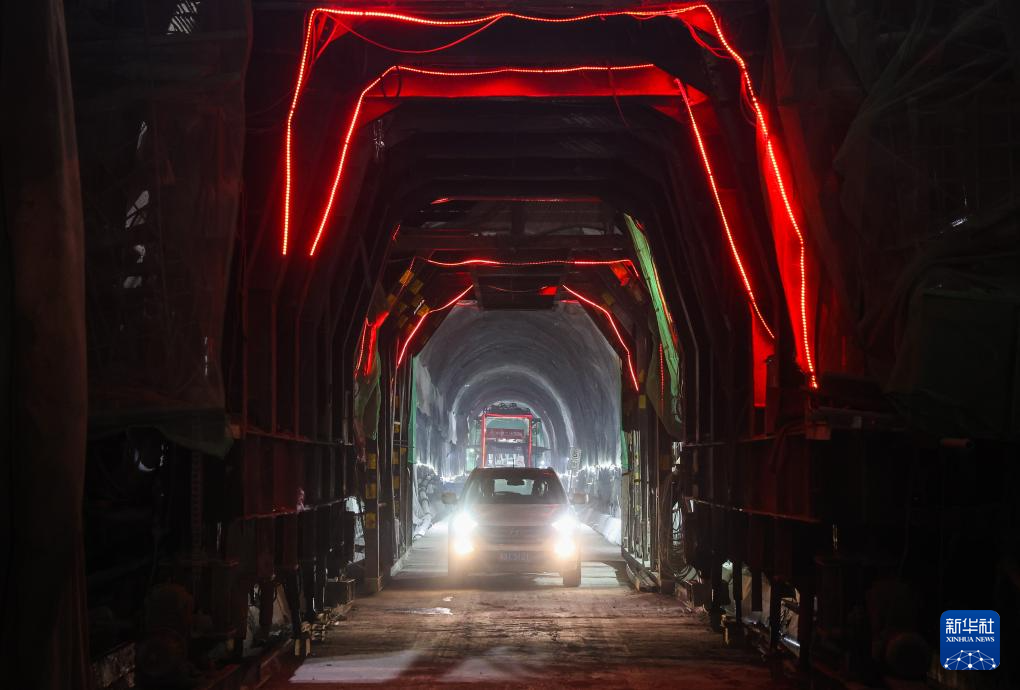 11月15日,通勤车辆经过百吉岭隧道内的一部施工台车。新华社记者 刘大伟 摄