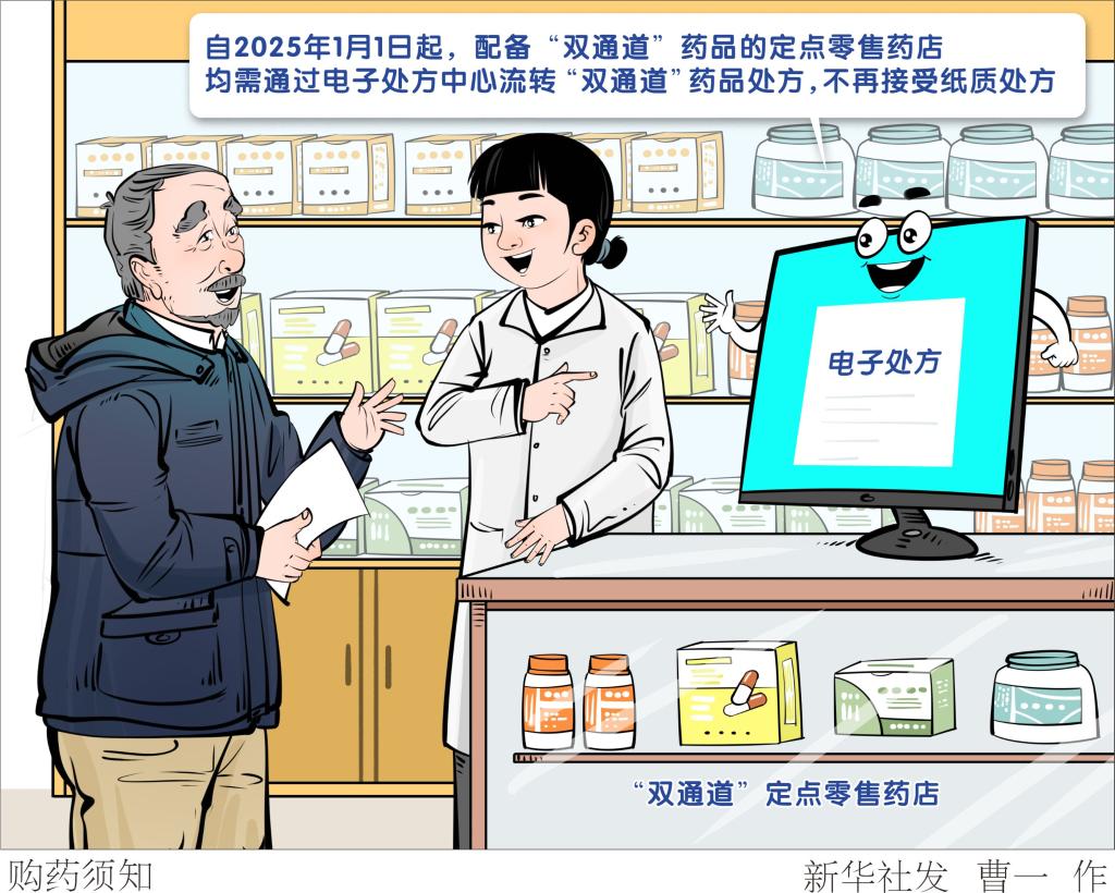 根据国家医保局此前发布的通知,自2025年1月1日起,配备“双通道”药品的定点零售药店均需通过电子处方中心流转“双通道”药品处方,不再接受纸质处方。