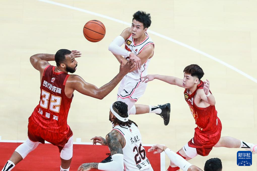 1月6日,广东东阳光队球员张文逸(上)在比赛中传球。新华社发(彭志刚摄)