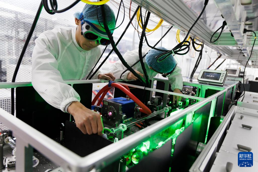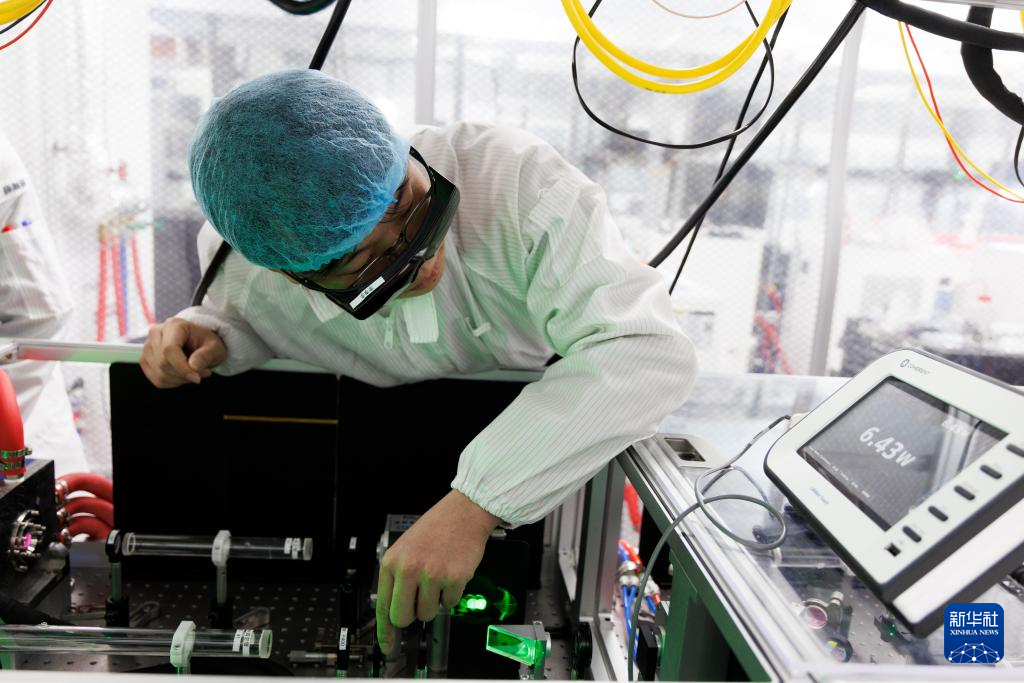 1月10日,科研人员在广东东莞阿秒科学中心实验室调试应用于先进阿秒激光设施的高性能激光器。新华社记者 金立旺 摄