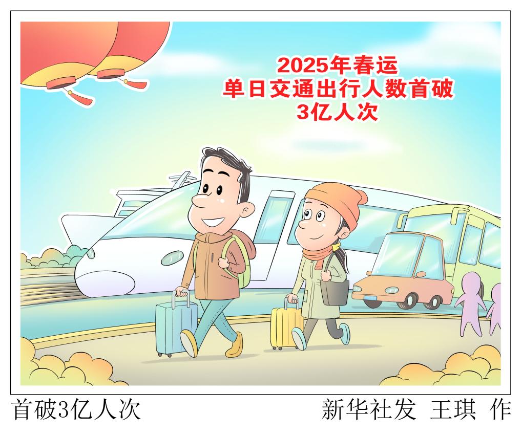 记者2月1日从2025年综合运输春运工作专班获悉,根据专班数据,1月31日(春运第18日,农历正月初三),全社会跨区域人员流动量为30404万人次,环比增长3.3%,比2024年同期增长6.8%。这也是2025年春运以来单日全社会跨区域人员流动量首次突破3亿人次。