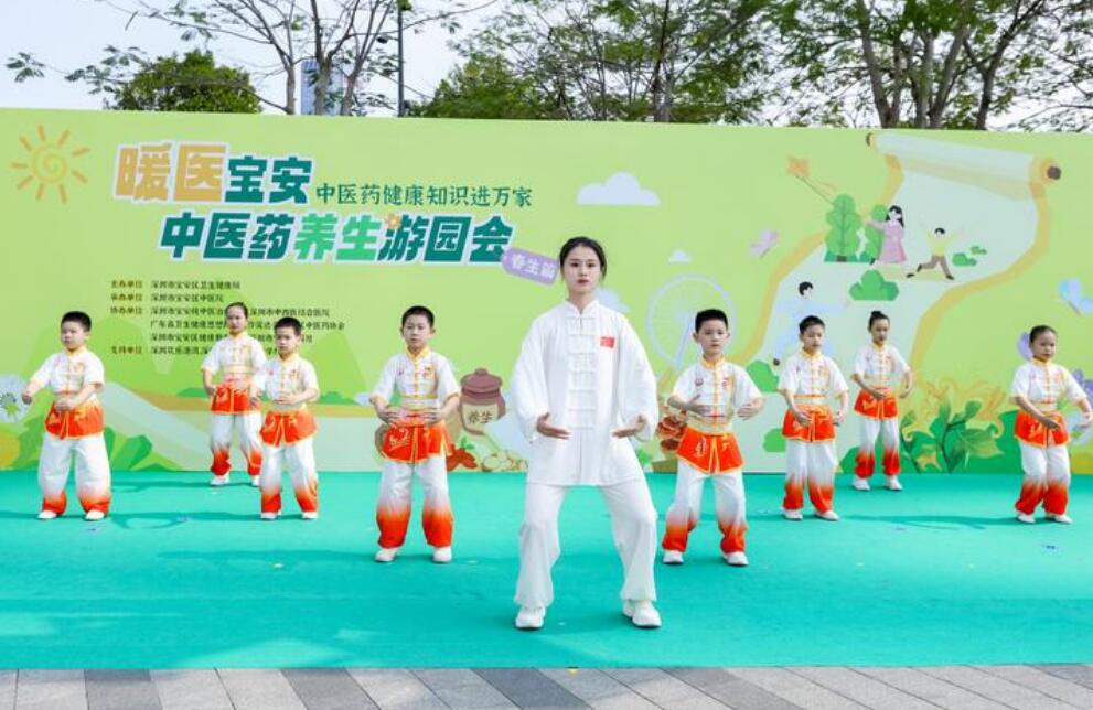 宝安区小学生刘一鹏(化名)身着练功服,与同学们在深圳市宝安区近期举办的“暖医宝安·中医药养生游园会”系列活动中表演了八段锦,观众纷纷点赞。这是深圳提升居民健康素养水平系列活动之一。