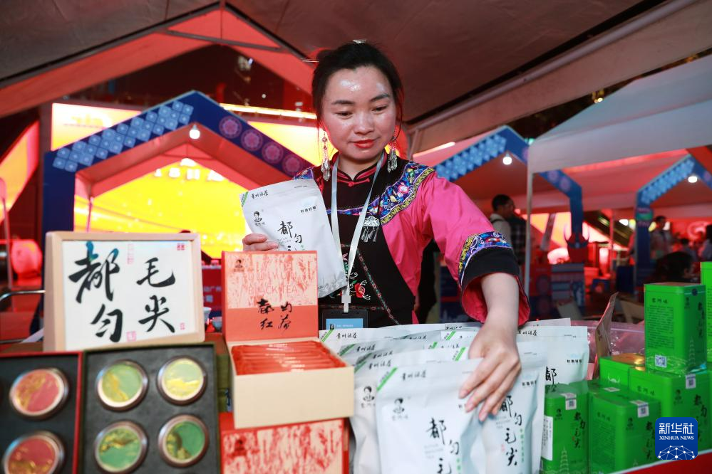 4月13日,工作人员在活动现场推介都匀毛尖。