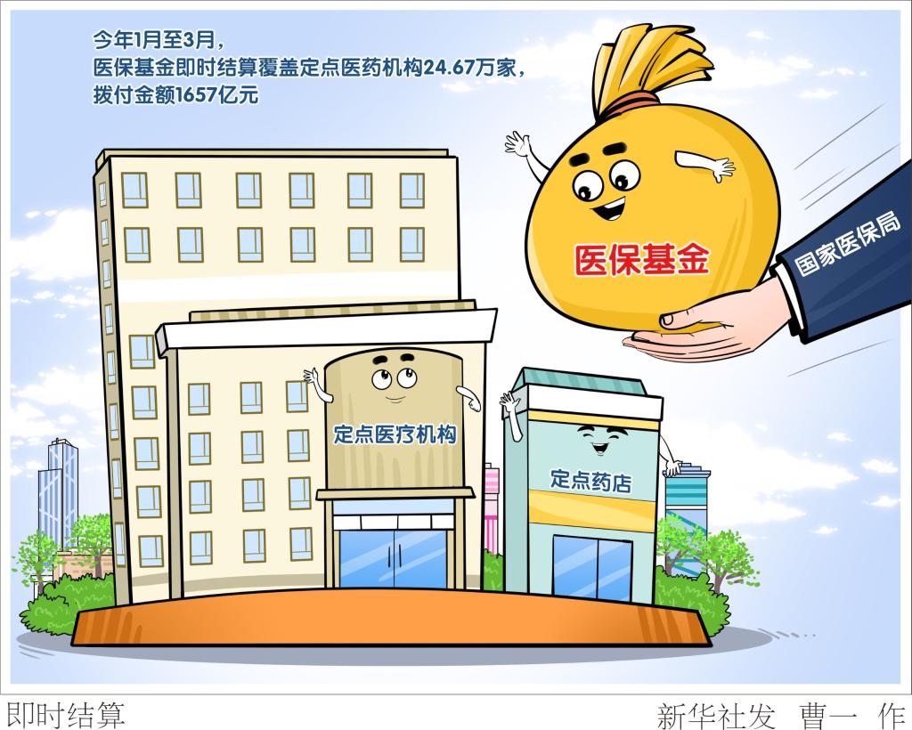记者4月16日从国家医保局获悉,今年1月至3月,医保基金即时结算覆盖定点医药机构24.67万家,拨付金额1657亿元。