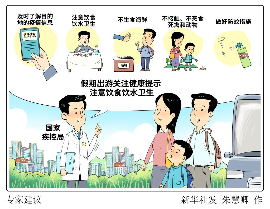 专家建议,假期出游前,公众要密切关注相关部门发布的健康提示信息,及时了解目的地的疫情信息,提前做好相应防范,合理安排出行活动。旅途中,要注意饮食饮水卫生,不生食海鲜,不接触、不烹食死禽和动物,做好防蚊措施。
