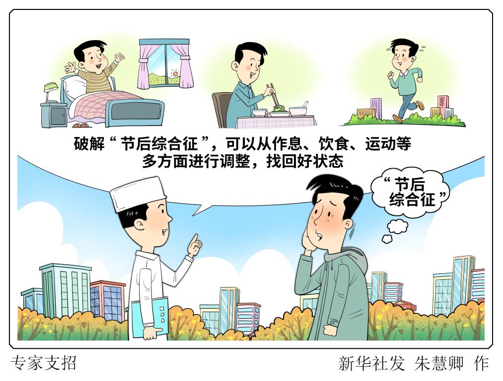 国庆中秋假期即将结束,有些人会感到精神不振、情绪低落,并伴有失眠、食欲减退等生理不适。专家表示,这可能是“节后综合征”来袭,可以从作息、饮食、运动等多方面进行调整,找回好状态。